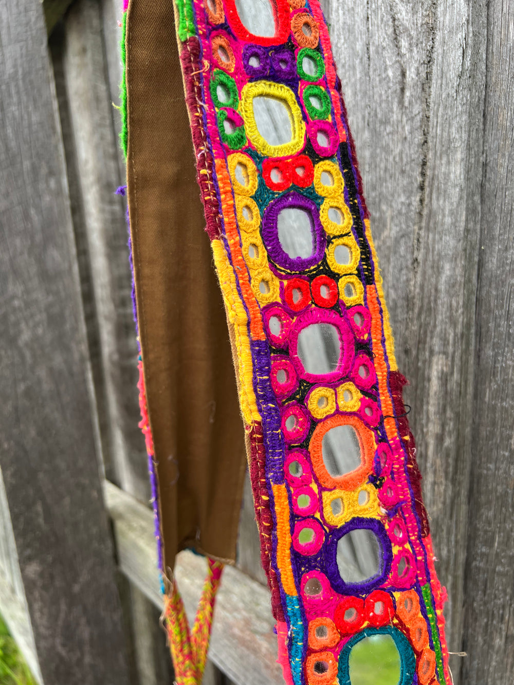 The materials used are antique tribal fabrics collected over the course of many years from the Banjara tribes