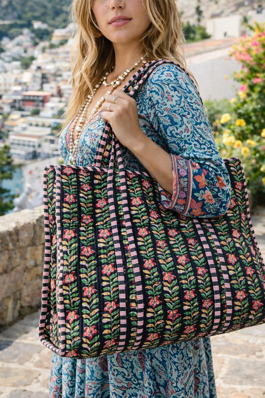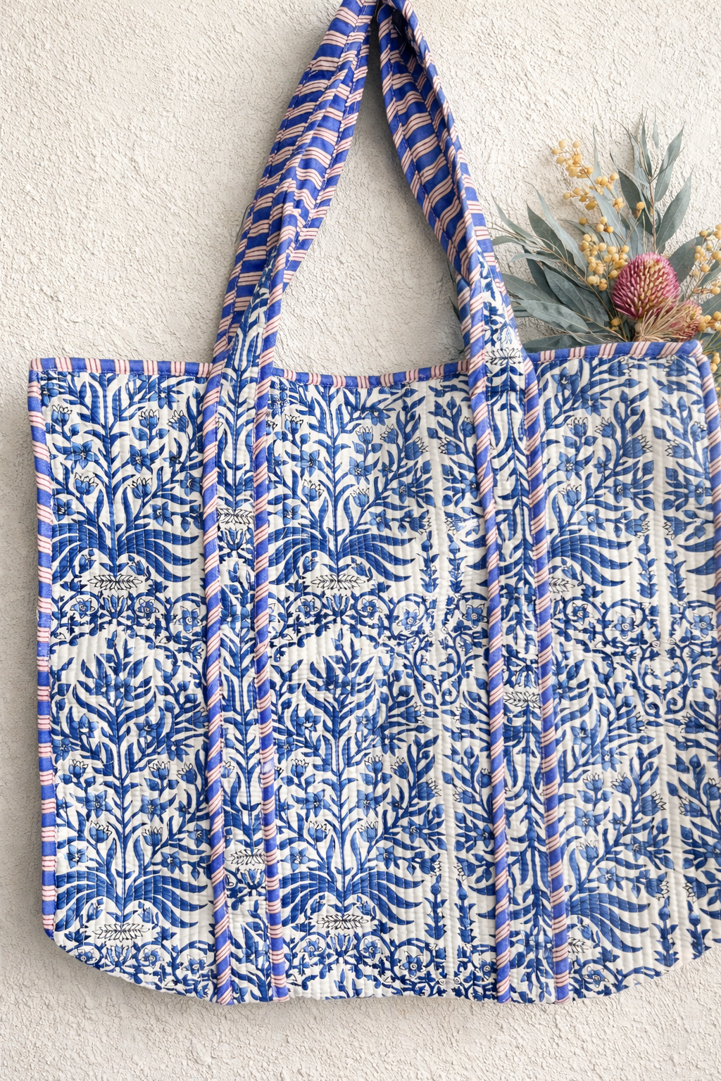 Sunshine Tote large - Blue and white